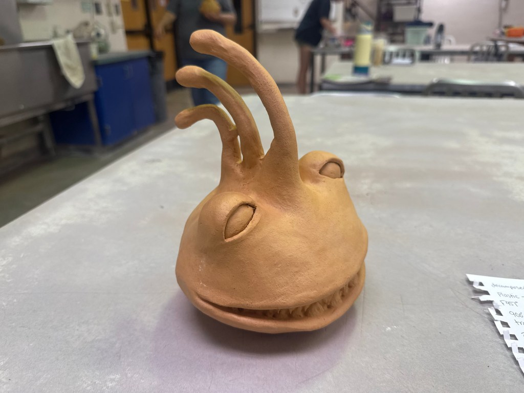 For the first couple of weeks in my ceramic class, we have been working on pinch form (basically bowls). To make a pinch form, you take a ball of clay and create a hole in the middle with your thumb, then work the edges around the hole with your hands until they become the thickness you want them to be. We had to make ten identical pinch forms for class. Now, we’re using them to practice different ceramic techniques.