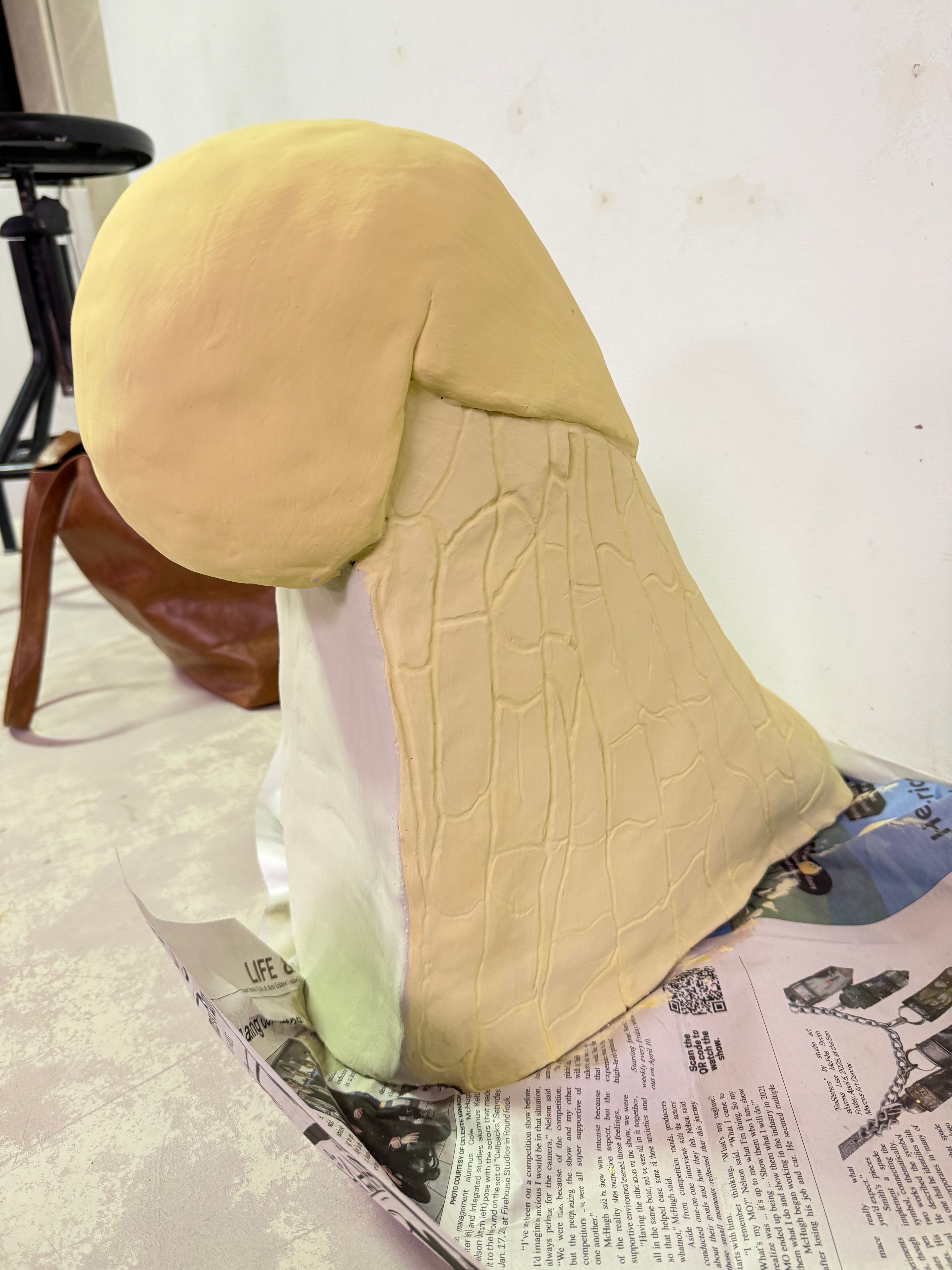 For my ceramics class were working on a ten inch coil vase as our eighth technique. To make our vases we started with our last pinch form as the base, then applied coils layer by layer and smoothed them out. After completing the form of the vase, we added on our Mardi Gras designs. For my design I decided to do three floats along the round section of the vase and varying sizes of beaded necklaces being thrown all around the neck of the vase.